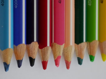 Papier und Farbstiften, Kreiden, Bleistiften,